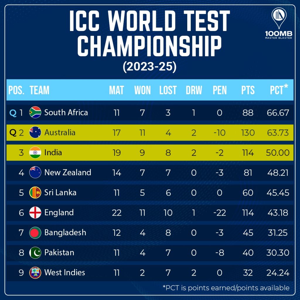 The triumph not only ended a decade-long wait for the Border-Gavaskar Trophy but also elevated Australia’s points percentage to 63.73%, ensuring their qualification for the WTC final. They are set to face South Africa, who confirmed their spot earlier in the cycle with a tense two-wicket win over Pakistan in the Boxing Day Test.