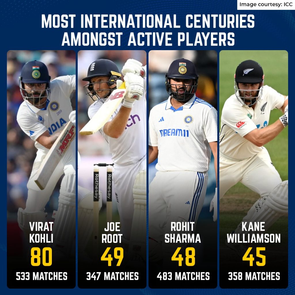 Joe Root overtakes Rohit Sharma in the highest centuries list among active players