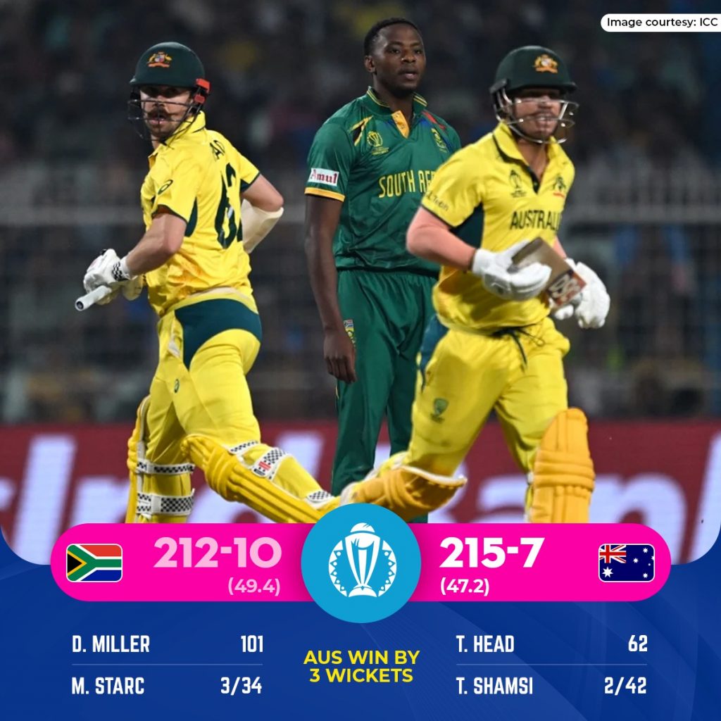 The second semifinal of the ongoing ODI World Cup took place at the Eden Gardens in Kolkata, where Australia and South Africa faced off and the Aussies clinched a nervy low-scoring thriller by three wickets to set up there date with India in the final on November 19.