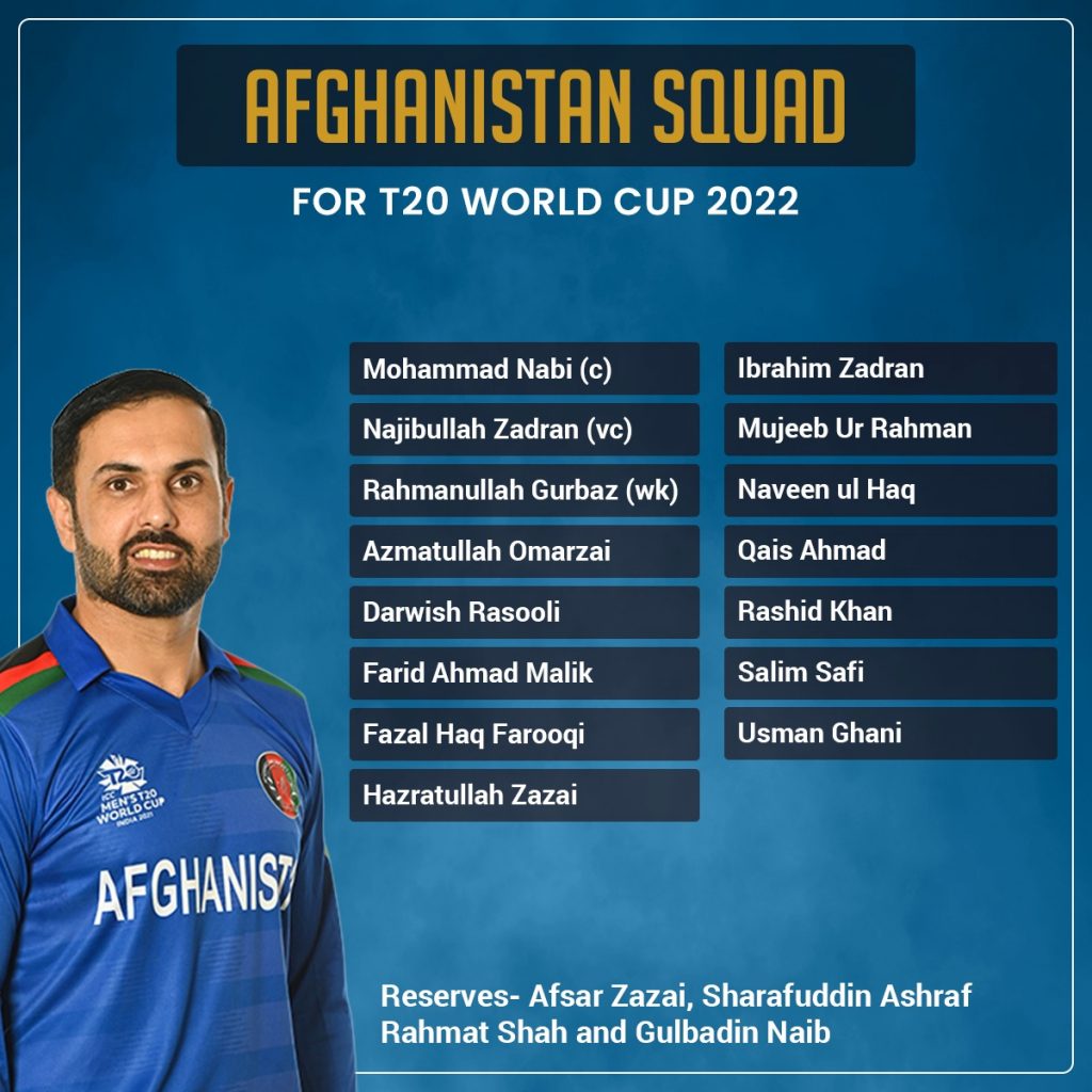 20-year-old Salim Safi, who is yet to make his international debut, has earned a callup and is a part of the 15-member roaster. Afsar Zazai, Sharafuddin Ashraf, Gulbadin Naib and Rahmat Shah will travel with the team as reserve players. Notably, Karim Janat, Samiullah Shinwari, Noor Ahmad, and Hashmatullah Shahidi, who were seen with the team during the Asia Cup 2022, have missed out on the flight to the marquee event.