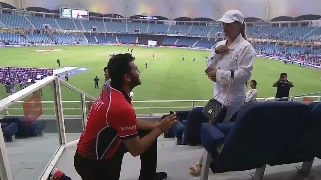 Cricketers proposing their girlfriends in stadium has been a familiar story for now and the latest to the list was Hong Kong’s Kinchit Shah. In a packed stadium in Dubai, Shah grabbed the attention of the crowds by proposing his girlfriend with a ring after the Asia Cup 2022 game against India got concluded.