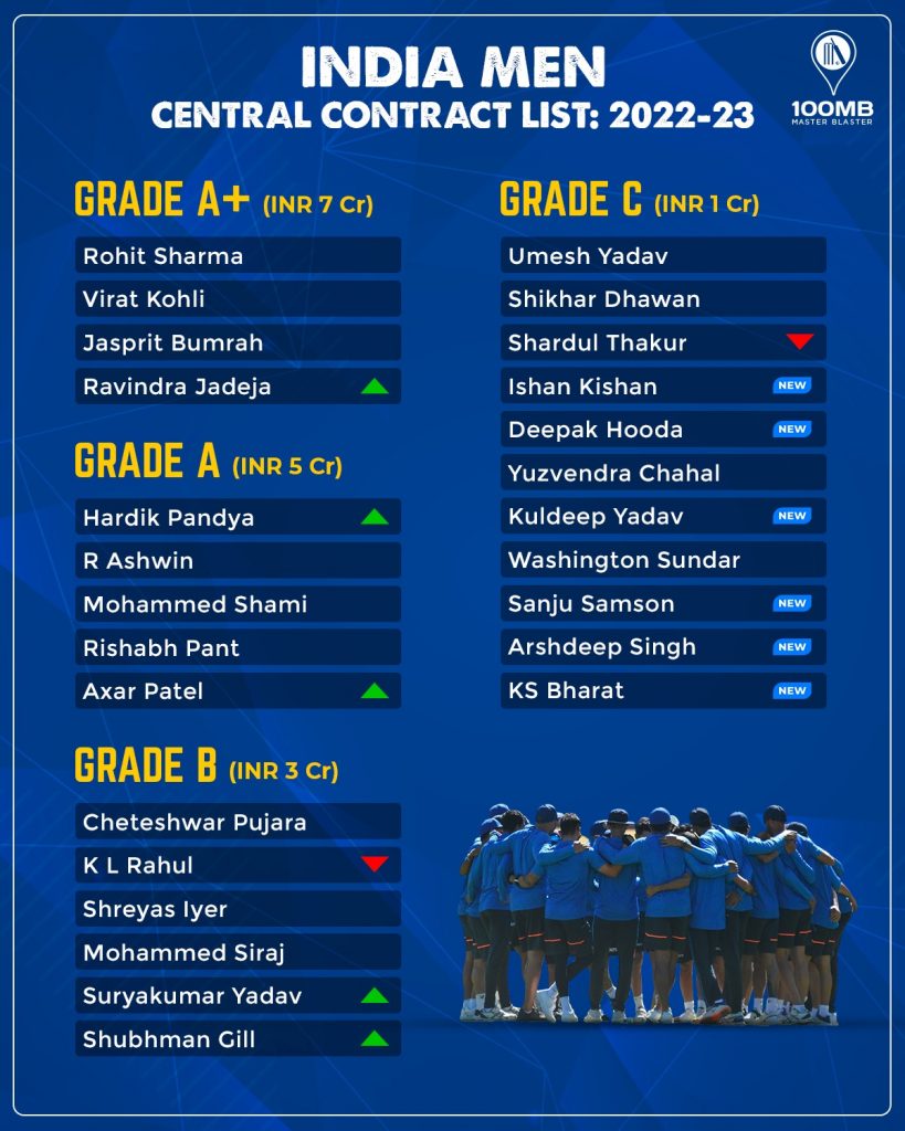 The cricket board promoted Suryakumar Yadav and Shubman Gill from Grade C to B in the latest cycle. Suryakumar Yadav received his first-ever contract in 2021-22. Meanwhile, Rishabh Pant, R Ashwin, and Mohammed Shami have retained their Grade A contract from the previous cycle. Whereas Cheteshwar Pujara and Mohammed Siraj have also received the same retainer (Grade B) as last year. A notable demotion is that of Shardul Thakur, who has slipped from Grade B to C.