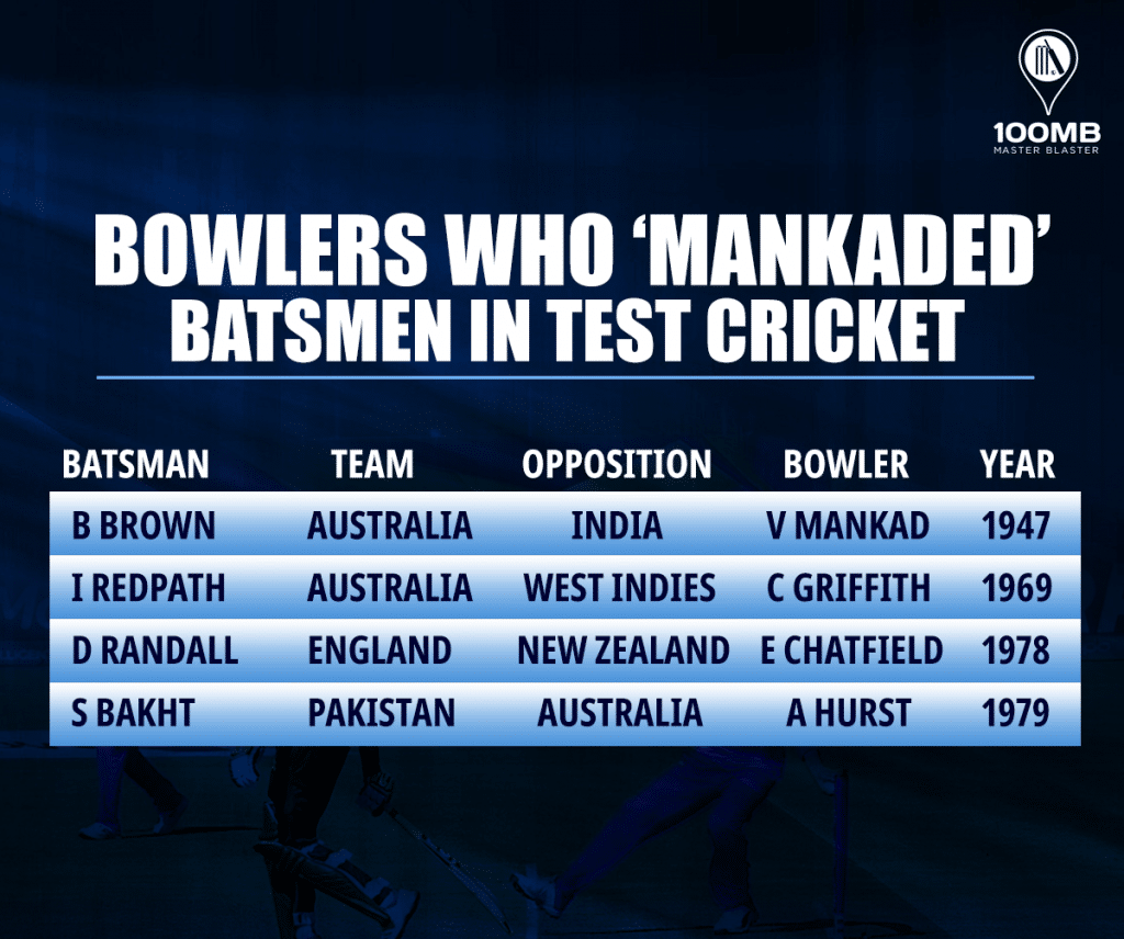 Since Bill Brown, only three players have been run out by a bowler while backing up in Test cricket. Another Australian Ian Redpath suffered this fate during a Test match in 1969. Charlie Griffith of West Indies caught Redpath moving out of his crease even before he had completed his delivery stride. England’s Derek Randall and Pakistan’s Sikander Bakht are the other two players to follow the route of Bill Brown. There have been three such incidents in the ODI format between 1975 and 1992.