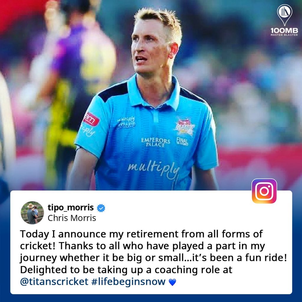 South Africa all-rounder Chris Morris has announced his retirement from all forms of cricket on Tuesday, January 11. The 34-year-old has brought the curtains down on his 12-year-old long career that started in 2009 with a first-class match. Morris last played for the Titans in their game against Boland in the four-day franchise series match at the Boland Park in Paarl.