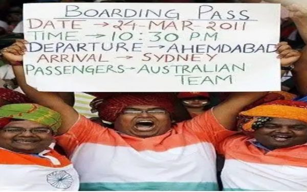 During the quarter-final match between India and Australia back in the 2011 World Cup, the pressure was much higher as two heavyweights were taking on each other. The match was played in Ahmedabad, and it attracted the crowd in large numbers. Fans were in a great mood to support the home team, and amid that, one fan took a hilarious dig at the visitors. He wrote the departure details of the Aussies on a banner stating they will depart from Ahmedabad on March 24, which was the date of the match, stating it will be their last game in the World Cup. And yes, it did come true.
