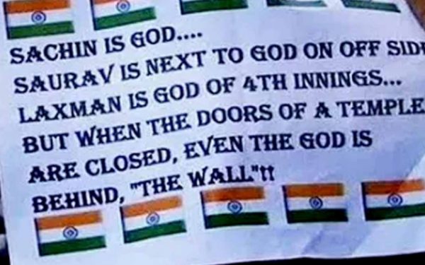 Sachin Tendulkar, Sourav Ganguly, VVS Laxman, and Rahul Dravid are some of the biggest names that have marked the golden era of Indian cricket. All four are known for their respective qualities, but fans keep arguing as to whose contribution was most significant in the game. A Rahul Dravid fan took a hilarious dig on other players by sporting a crowd banner stating – “after temples close, even the gods have to go behind a wall.”