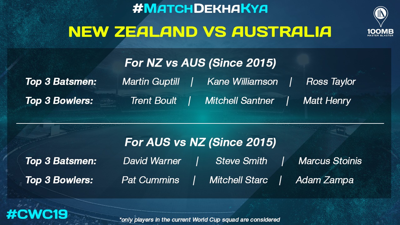 Martin Guptill (New Zealand): Though the opener has endured a torrid tournament, he will find solace in the excellent record which he enjoys against the Aussies. Since 2015, he has scored 460 runs in 8 innings against Australia at an average of 57.40 with a highest score of 114.