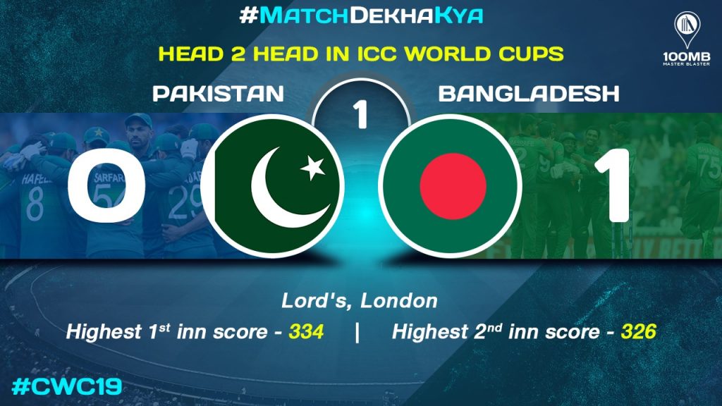 Incredibly, Pakistan and Bangladesh have clashed with each other only once in the World Cup and what a match it was! In the 1999 tournament, Bangla tigers shocked Pakistan with a 62-run triumph. The victory paved the way for Test cricket in Bangladesh.