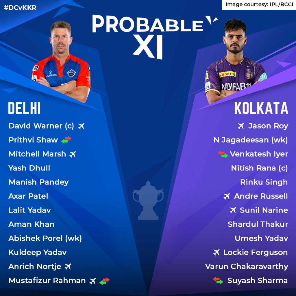 Here’s the probable playing XI for Delhi Capitals vs Kolkata Knight Riders clash:
