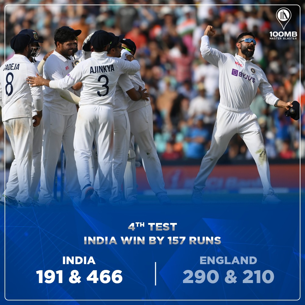 After being humiliated at the hands of the Englishmen at Headingley, a courageous Team India bounced back to claim victory at The Oval. Despite being bundled out for 191 in their first innings, the visitors registered a thumping 157-run win in the 4th Test on the final day. India have now taken a 2-1 lead in the five-Test series, with one match to go.