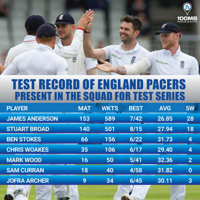 A total of seven pacers including Ben Stokes featured in at least one of the three Tests against West Indies. The English team was heavily criticized for dropping Stuart Broad in the 1st Test who went on to pick 16 wickets in the remaining two matches. If we compare the pace bowling attacks of both the teams, it is likely to come down to the experience of England. The home team will start the series with two of their senior men having 1090 wickets between them.