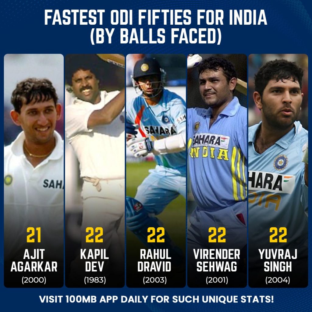 Ajit Agarkar, more often known for his bowling skills, played a sensational innings in Rajkot against Zimbabwe and he holds the record for the fastest half century in ODIs by an Indian batter. The right-hander achieved the feat in just 21 balls and finished with an unbeaten 67 off 25 balls with seven fours and four sixes in the innings. India went on to win the game by 39 runs in the end with Agarkar picking up 3 for 26 with the ball.