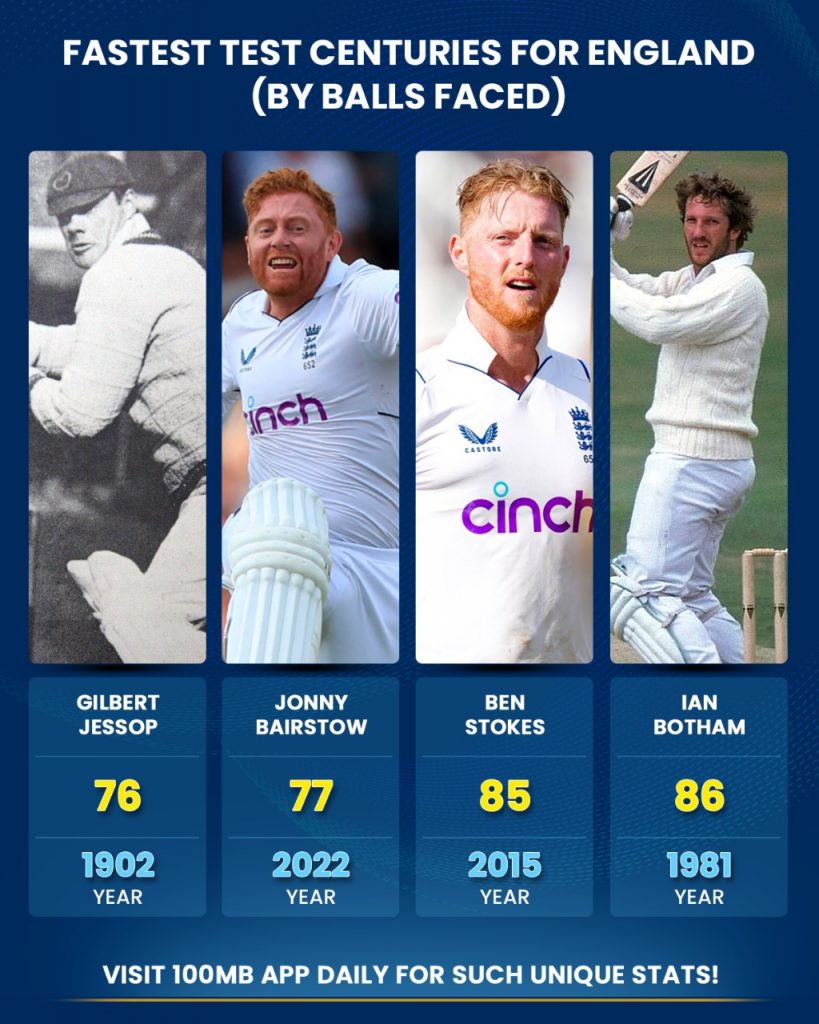 Jonny Bairstow tore down the New Zealand bowling attack in the 2nd Test played at Trent Bridge, Headingley. The English side completed the chase of 299 runs with ease after the batter had completed a miraculous century. Bairstow needed only 77 deliveries to bring up his ton against the Black Caps. His effort ranks 2nd fastest in England’s vast Test history. Here are the top five.