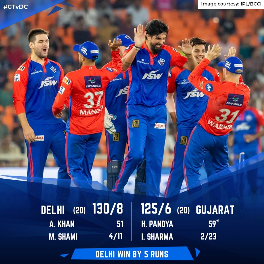 The 44th game of the Indian Premier League (IPL) 2023 featured a low-scoring encounter between the David Warner-led Delhi Capitals and the defending champions Gujarat Titans at the Narendra Modi Stadium in Ahmedabad on Tuesday, May 2. Delhi Capitals successfully defended a target of 131 runs and won the game by five runs.