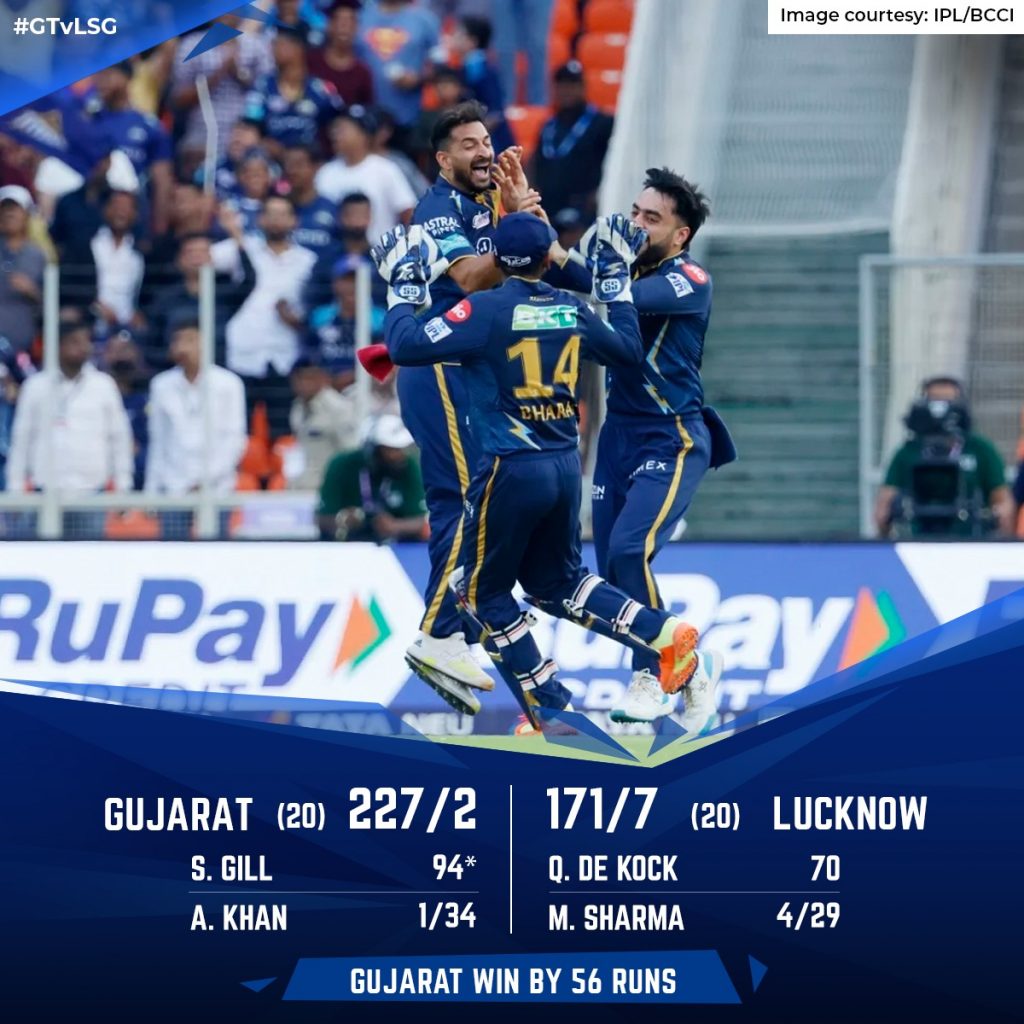 Gujarat Titans handed a chastening defeat to Lucknow Super Giants in a high-scoring affair in Ahmedabad. The defending champions won the match by a whopping margin of 56 runs after posting a mammoth 227 runs in the first innings on the back of glorious knocks from Wriddhiman Saha and Shubman Gill.