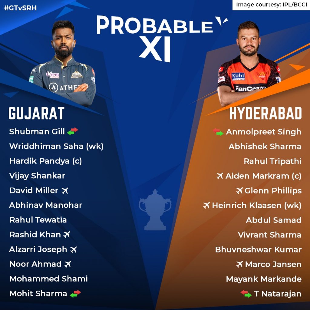 Probable playing XI for Gujarat Titans vs Sunrisers Hyderabad: