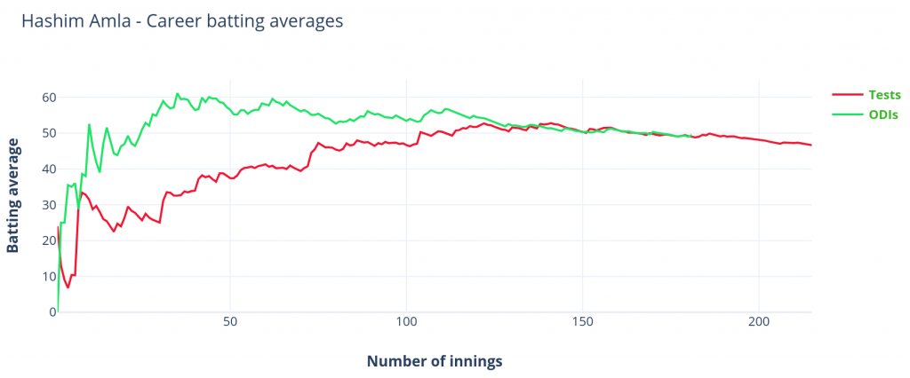 It was in August 2018 that Amla’s batting average dropped below 50 for the first time since May 2010. Despite a few tall scores in the following months, it eventually ended up at 49.47.
