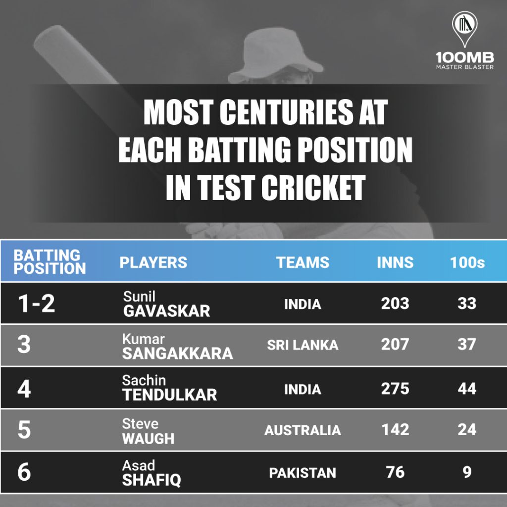 The record for scoring most centuries in Test cricket belongs to Indian legend Sachin Tendulkar. Sachin has 51 Test tons to his name in 200 matches he played for India. In this article, we are going to list out the batsmen scoring most hundreds at each batting position.