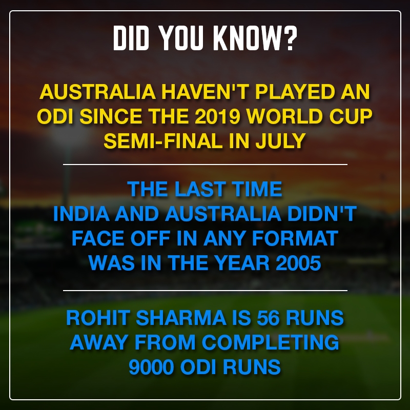 On the other hand, India went on to win four of their next six ODIs post their heartbreaking World Cup semi-final loss against New Zealand. They also dazzled in the longer format at home and did relatively well in the T20Is. In their first assignment of the year 2020, India would hope to continue their winning streak but their task will be cut out against a dangerous Australian side.