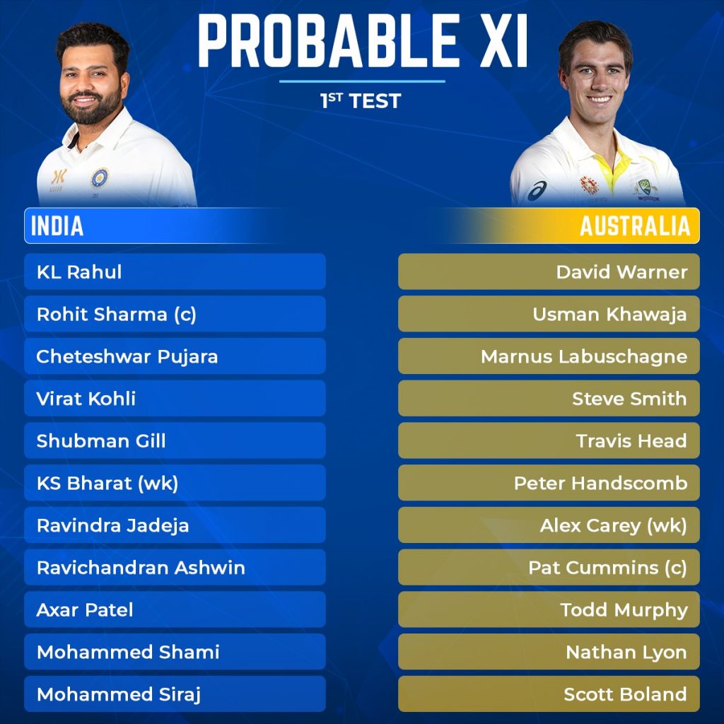 Australia will be missing the services of three players in the first game. Mitchell Starc, Josh Hazelwood and Cameron Green have been ruled out due to injuries. Australia will bank on their powerful batting lineup in the absence of their leading bowlers. The Australian captain has indicated that they are open to playing debutant Todd Murphy in the opening Test.