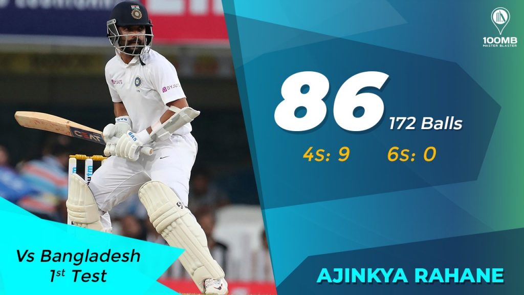 Post lunch break, India started putting pressure back on the bowlers. Agarwal duly completed his ton and started recalibrating his innings towards a higher score. Rahane soon followed suit by bringing up his Test fifty. Even the new ball did not prove of much help for Bangladesh as the pair continued pulverising the bowling side. Against the run of play, Rahane attempted an uppercut which ended straight in the hands of Taijul Islam. The vice-captain was disappointed to miss out on a well-deserved hundred by just 14 runs.