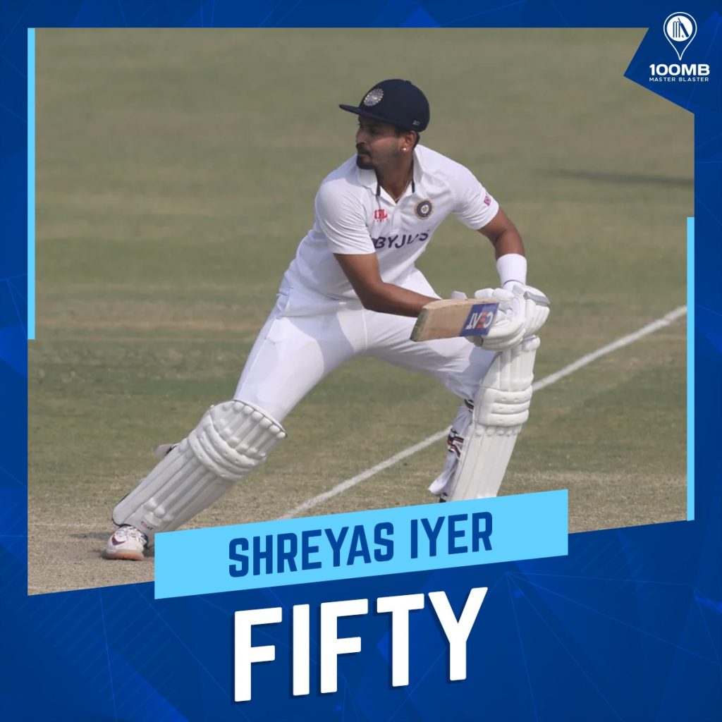 Shreyas Iyer was once again the hero of the Indian side with the willow in hand. After scoring a century in the first innings, the debutant followed that up by scoring a superb 65 off 125 deliveries in the second to help India recover from 51/5. Iyer put on a timely partnership of 52 runs with Ravichandran Ashwin and followed that up with another valuable stand of 64 runs for the 7th wicket alongside Wriddhiman Saha to help India set New Zealand a challenging target of 284.