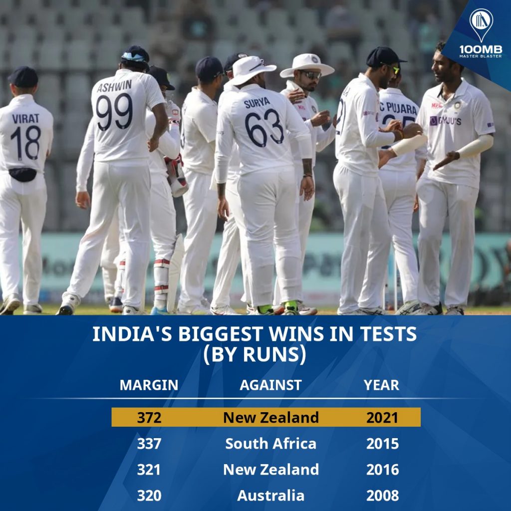 2. This crushing 372-run win is the largest victory for the Indian side in terms of runs in Tests. Their previous largest win was a 337-run win over South Africa in Delhi.