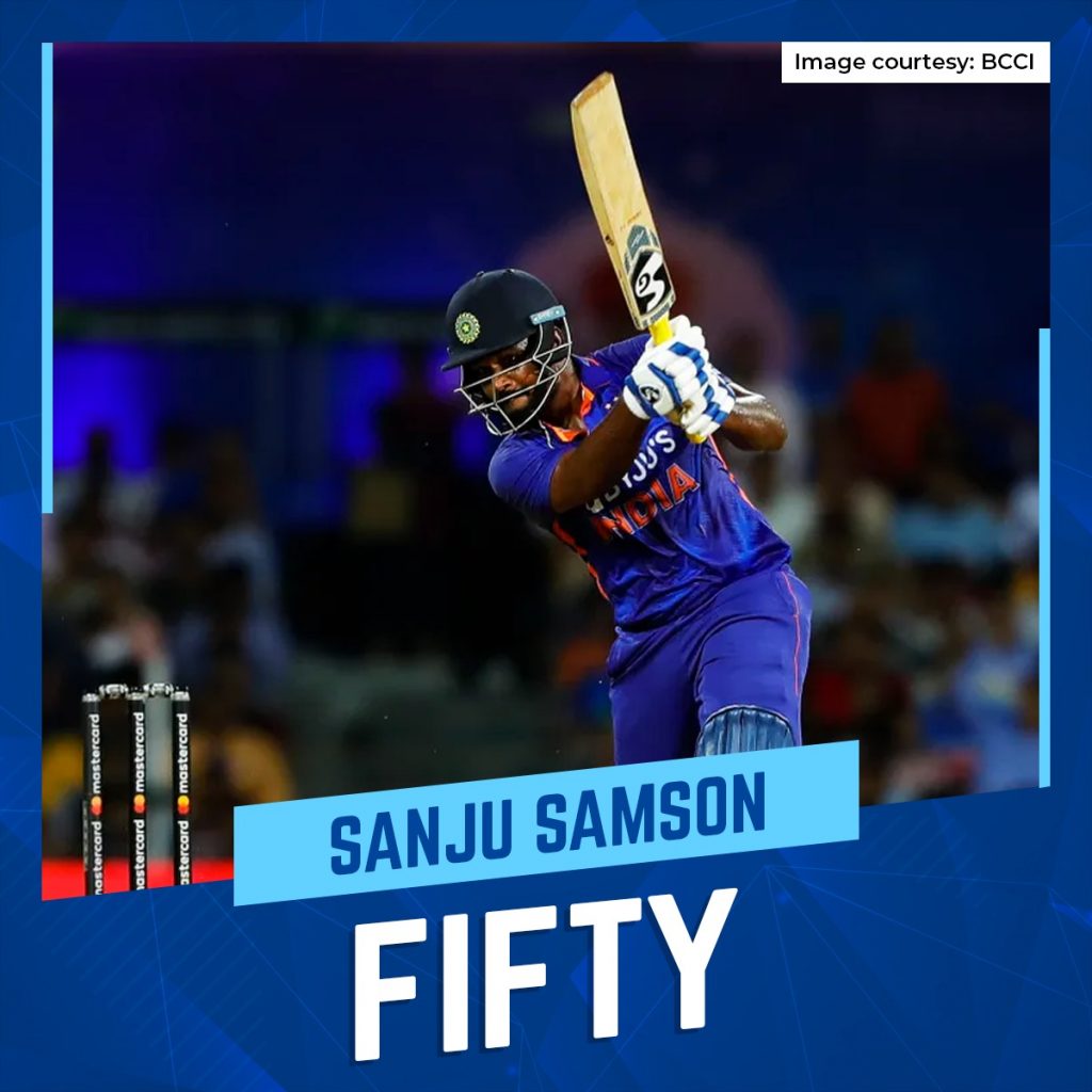 Samson scored the highest unbeaten 86 runs off 63 balls with the help of nine fours and three sixes. He smashed 19 runs when India needed 31 runs in the last over but failed to guide his team to a victory.