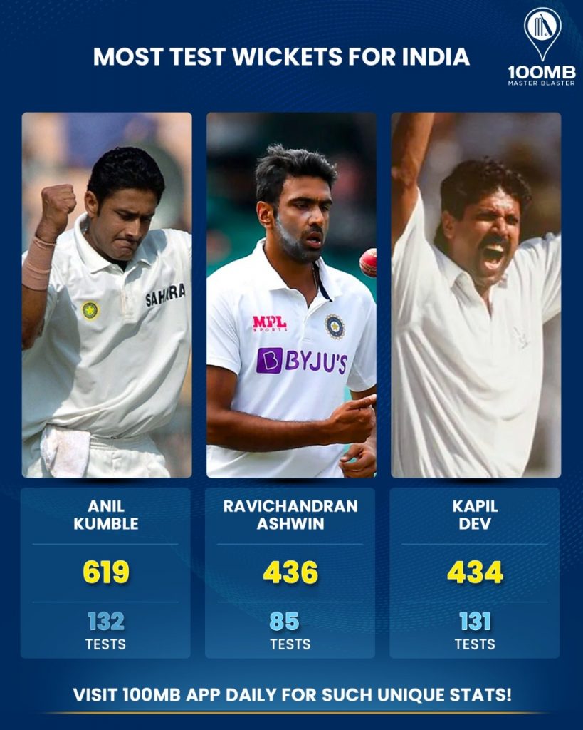 436 – With 436 wickets, Ashwin entered the top ten list of all-time wicket-takers in Test history and is now ninth in the chart.