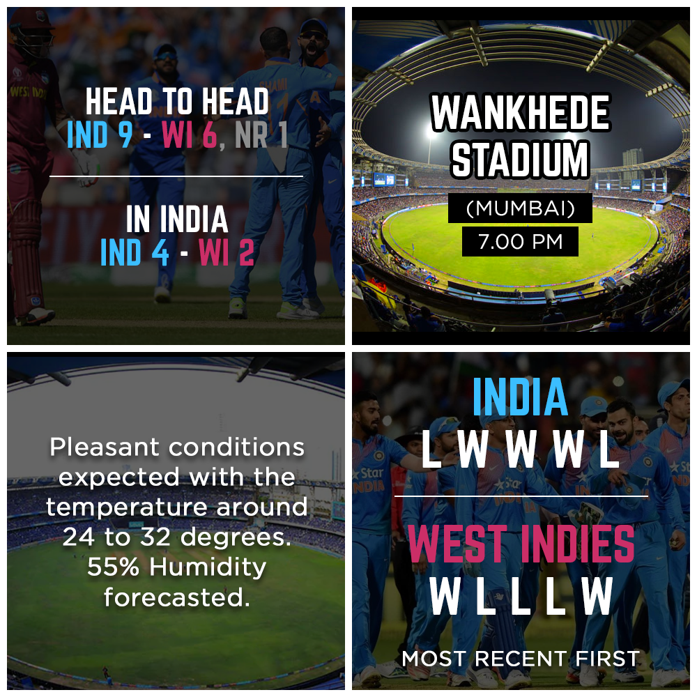 After a thumping victory in the first T20I, India were blown away by West Indies in the second T20I played at Thiruvananthapuram. Now both the teams arrive at Mumbai to resolve the deadlock of 1-1 each. Virat Kohli was critical of poor fielding performance in the previous match whereas West Indies took heart from their excellent bowling outing and destructive batting. The scales are in the balance going into the decisive T20I at Wankhede.