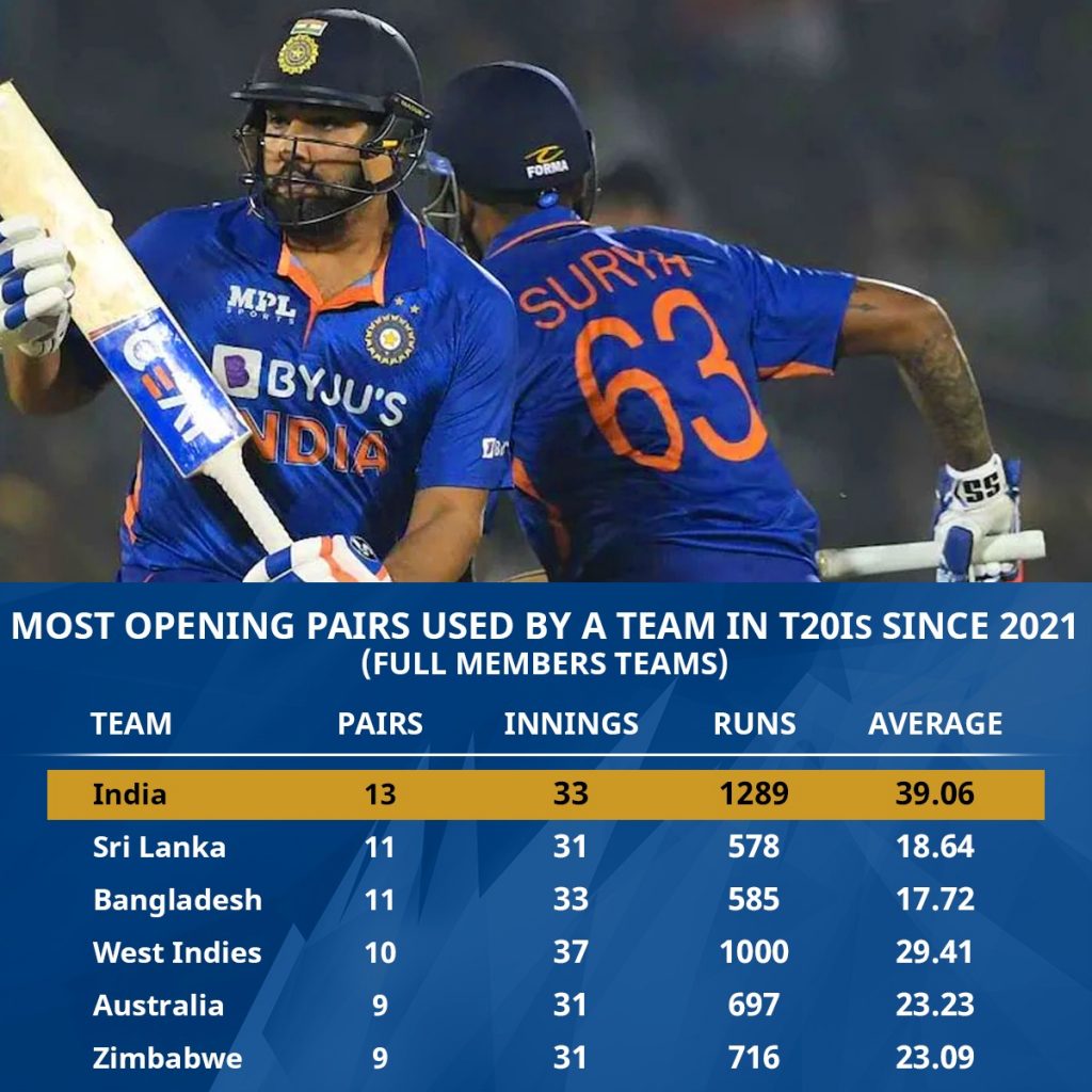 After bowling out of the T20 World Cup in the UAE, the Indian side has opted to commence their innings with 8 different opening pairs. The two that have confronted the opposition the most times are Ruturaj Gaikwad-Ishan Kishan and Rohit Sharma-Ishan Kishan. Seeking a left-right balance at the top, India persisted with Kishan at the opening spot. However, his poor returns outside India have pushed him back in the pecking order.