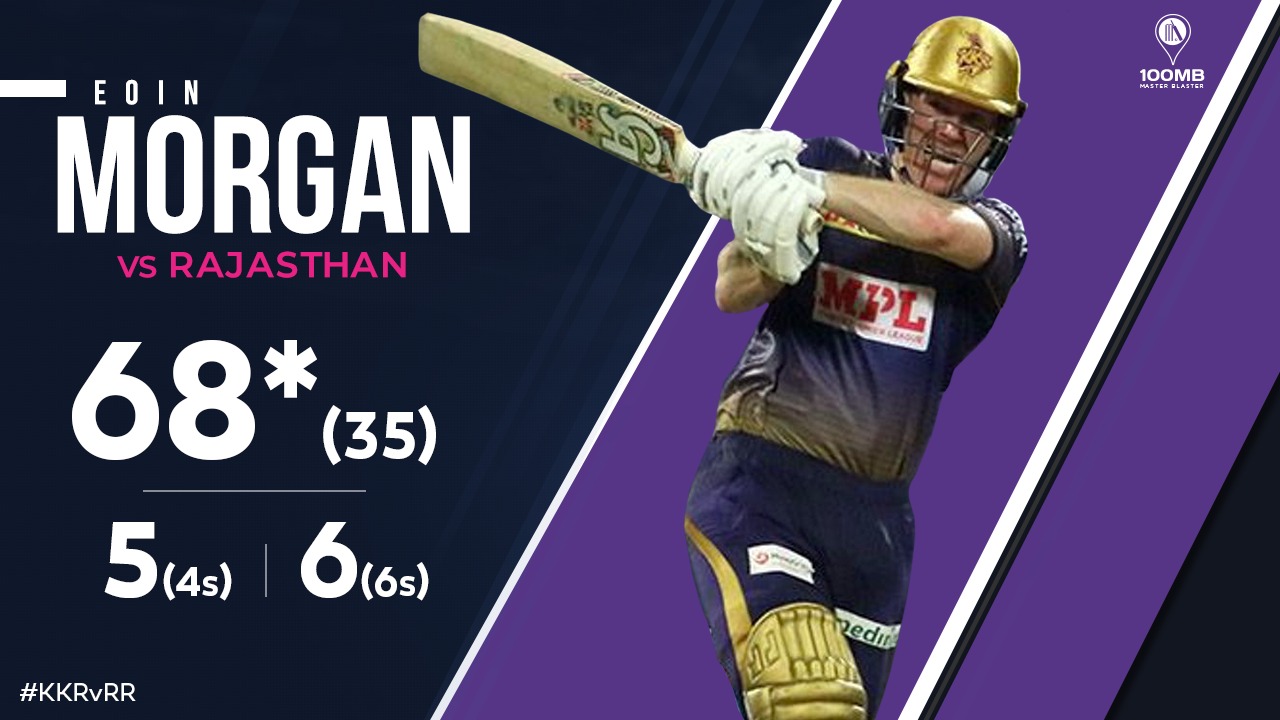 The duo added 45 runs quickly under 3 overs. Russell finally looked in good touch scoring 25 off 11. However, the real hero for them with the bat was the high-flying Morgan. The skipper led from the front to score 68 off just 35 balls with five fours and six sixes. His knock propelled Kolkata to 191 runs in their 20 overs.