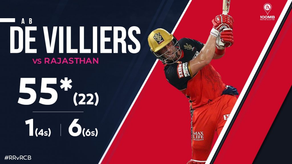 Devdutt Padikkal and Virat Kohli then added 89 runs for the second wicket. But a relatively slow start meant, RCB were always behind in the chase. Moreover, the duo getting out of consecutive deliveries didn’t help their cause. However, AB de Villiers, the superman, came out to bat and turned things on its head to leave RR helpless.