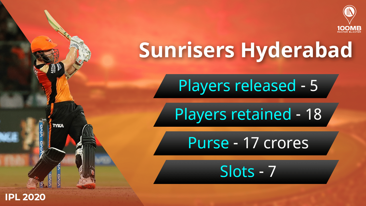 Sunrisers Hyderabad have been one of the most consistent franchises in terms of performances over the past few years in the IPL. They have operated like a well-oiled machine, with a strong leadership group being at the core of their success. But there have been a few chinks in the armour, which has stopped them from becoming a dominant force. With an auction purse of only 17 crores, they will have to play it smart in order to attain their targets.