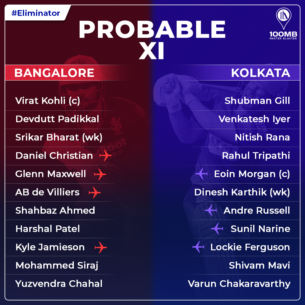 IPL 2021 Eliminator – Royal Challengers Bangalore vs Kolkata Knight Riders