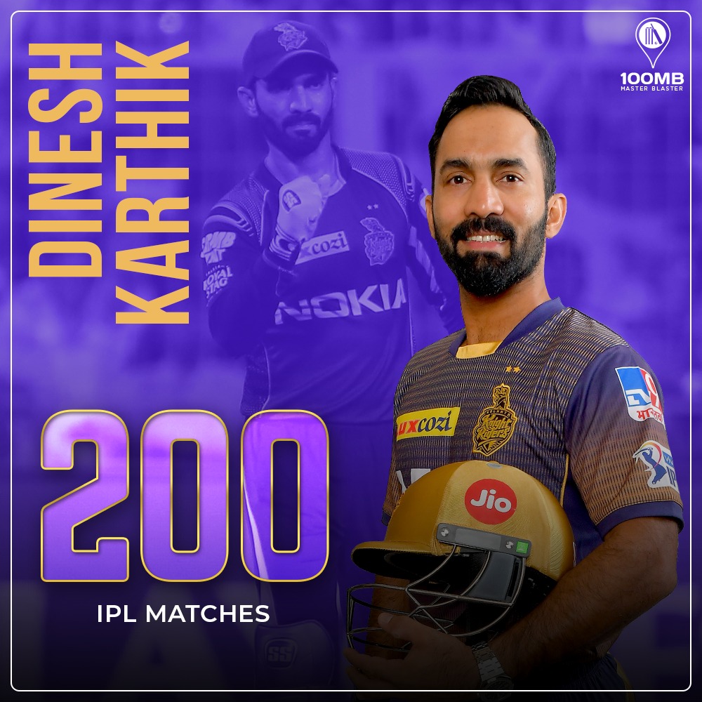 200 – This was the 200th game for Dinesh Karthik in IPL. He became only the third player after MS Dhoni (208) and Rohit Sharma (204) to reach the landmark.