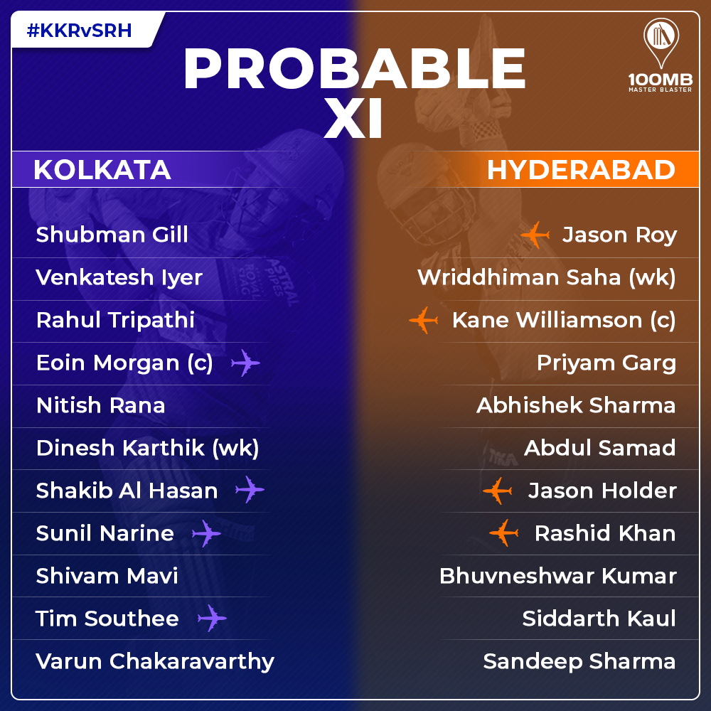 IPL 2021 Match 49 – Kolkata Knight Riders vs Sunrisers Hyderabad