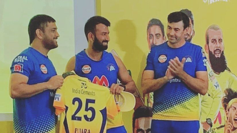 The latest recruits by the franchise, Cheteshwar Pujara, Moeen Ali, and Krishnappa Gowtham were handed the new CSK jersey. The trio received the official kits from the franchise leader MS Dhoni. The tradition of the new recruits getting their jerseys from the captain has been long followed at the franchise.