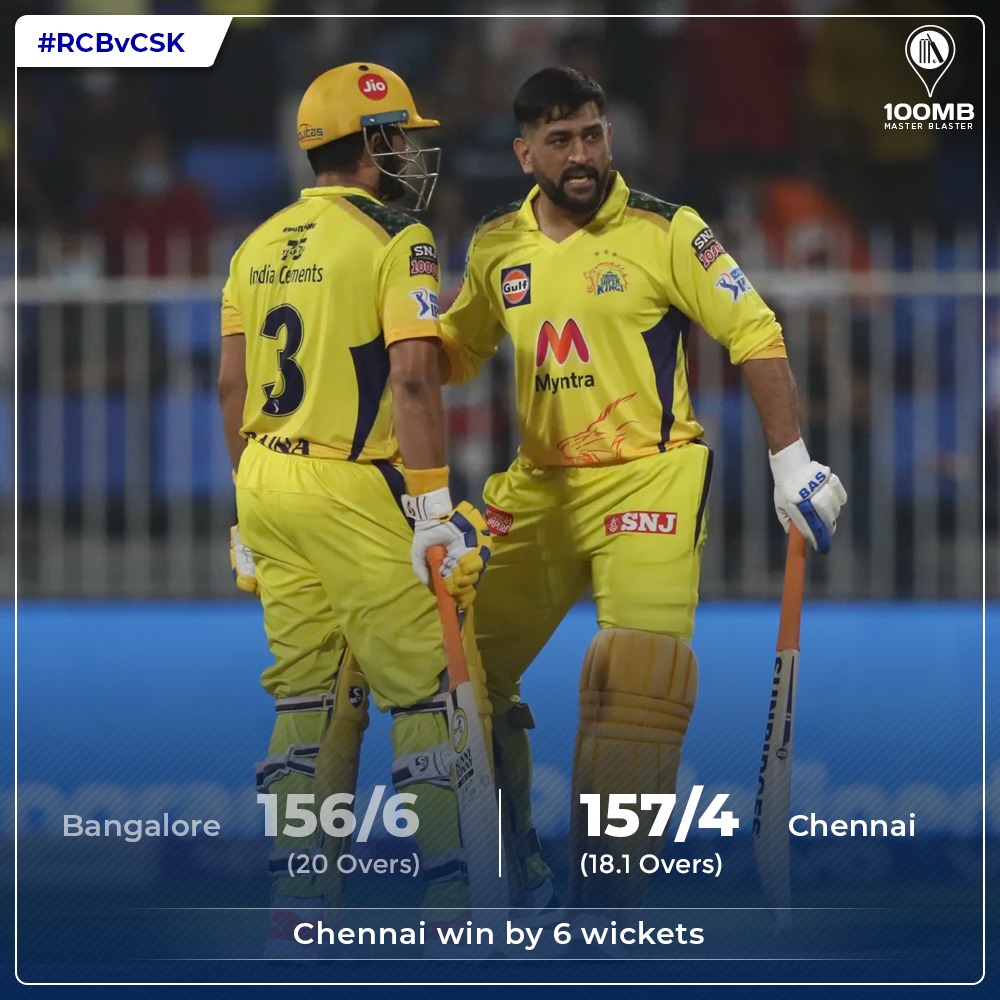 Chennai Super Kings continued their superb form in the IPL 2021 winning their seventh game of the tournament. RCB flattered after a good start and lost momentum. They made 156 runs which were, in the end, chased down quite easily. CSK won this match by six wickets and 11 balls to spare.