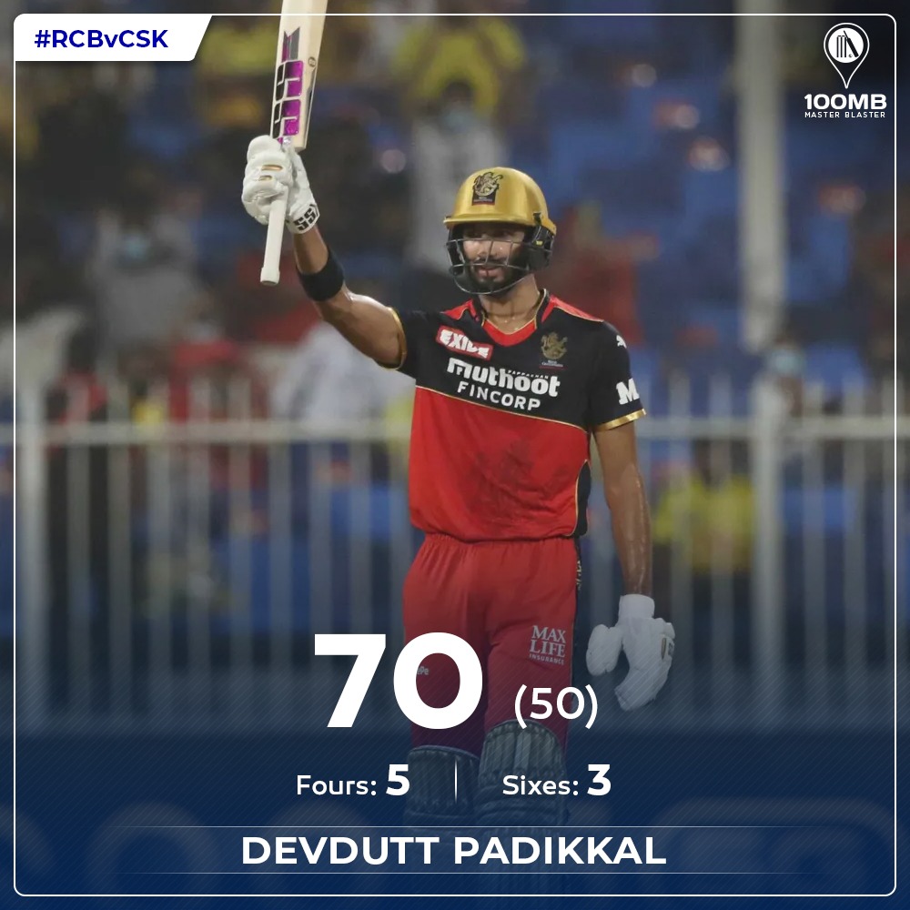 The two put together a brilliant century run partnership which laid a foundation for a fantastic finish. When Kohli fell for 53 runs after 13.2 overs, the score was 111 for 1. AB de Villiers came in at no. 3 but RCB failed to push on and lost regular wickets. CSK tightened the screws with some brilliant bowling. Devdutt Paddikal was eventually dismissed for 70.