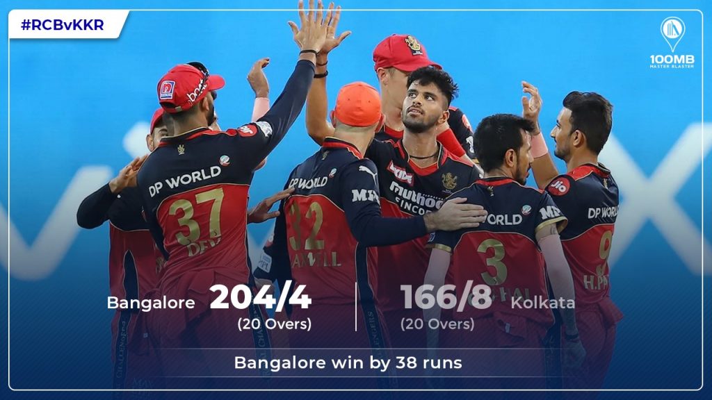 KKR fell short by 38 runs as Bangalore bowlers delivered another good performance to restrict their opposition. Kyle Jamieson picked up three wickets while Yuzvendra Chahal and Harshal Patel accounted for two each. For Kolkata, Andre Russell top-scored with a cameo of 31 from 20 balls at the end. With this, KKR lost two of three matches in this season.