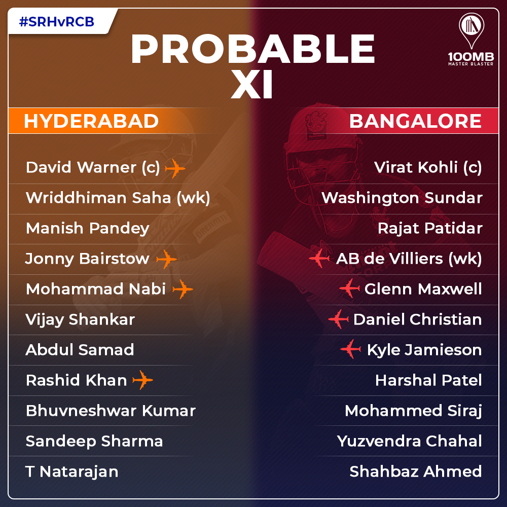 IPL 2021 Match 6 – Sunrisers Hyderabad vs Royal Challengers Bangalore