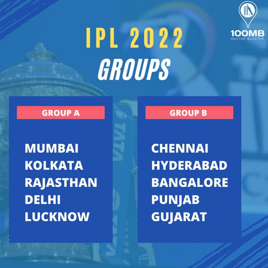 The grouping of the 10 teams has been finalised on the basis of the number of IPL championships won and their appearances in the IPL final. Mumbai Indians take the top spot in the A group whereas Chennai Super Kings find themselves in the other group. Kolkata, Rajasthan, Delhi and Lucknow are paired with Mumbai. Hyderabad, Bangalore, Punjab and Gujarat complete group B.