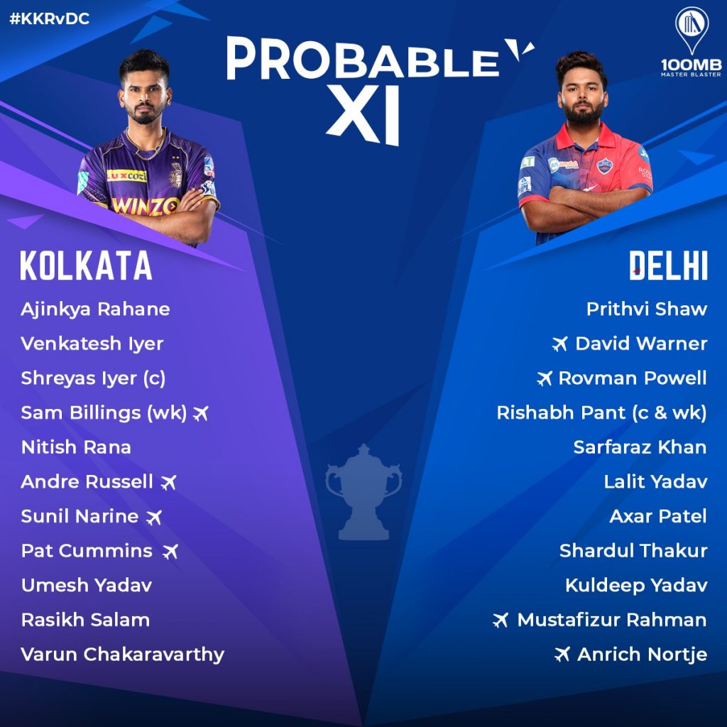 Here’s the Predicted Playing XI of Kolkata Knight Riders vs Delhi Capitals