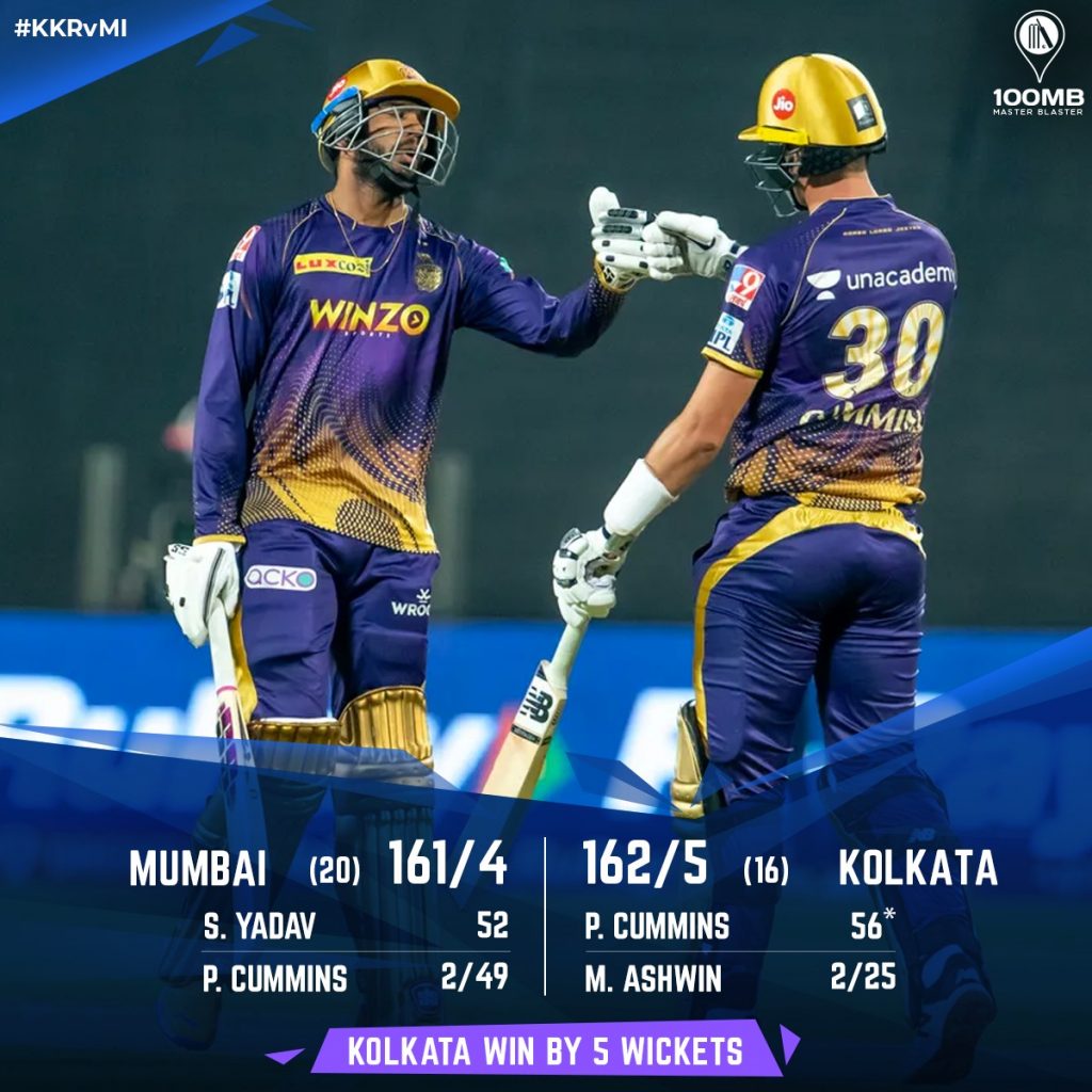 Mumbai Indians succumbed to their third loss of the season and it was purely an assault from Pat Cummins which turned the game on Kolkata Knight Riders’ favour. With five wickets gone for 101 in the 14th over, the game was poised but Cummins and Venkatesh Iyer stitched a brutal partnership together and it was the Australian who did the most of the damage.