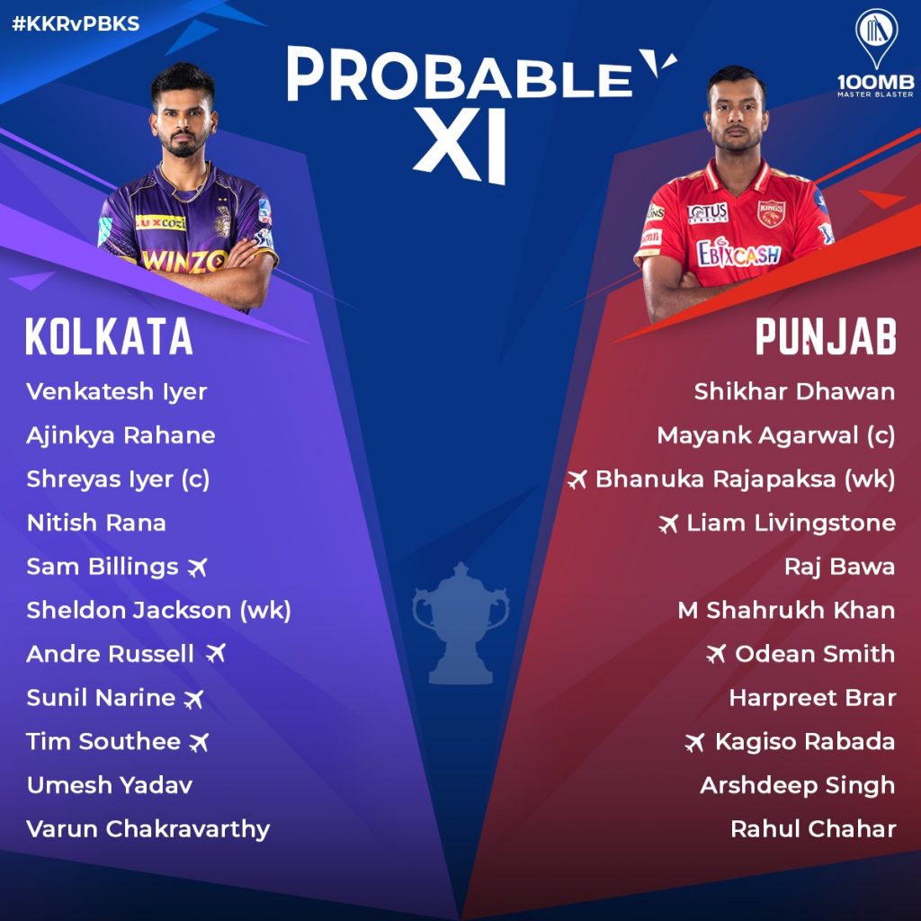 Predicted XI for Kolkata Knight Riders vs Punjab Kings