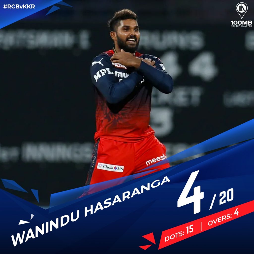 Wanindu Hasaranga bowled an outstanding spell with the ball and showed his worth. The leg-spinner finished with 4 for 20 in his spell and accounted for the big wickets in the KKR innings, which changed the course of the game.