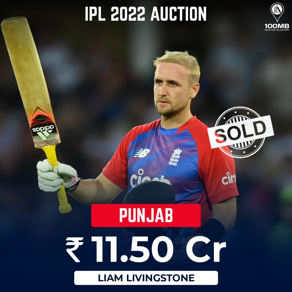 The hard-hitting England batter Liam Livingstone found a new home in Punjab Kings (PBKS) as the franchise shelled out a staggering 11.5 crores to secure his services. Livingstone, who bowls handy leg-spin, is a reputed big-hitter of the ball and also has a T20 international century to his name. He was bought by 75 Lakhs by Rajasthan Royals last year but couldn’t do much damage in any of the games. His base price was 1 crore and got sold for 11.5 cores as he also became the most expensive overseas player in this year’s auction.