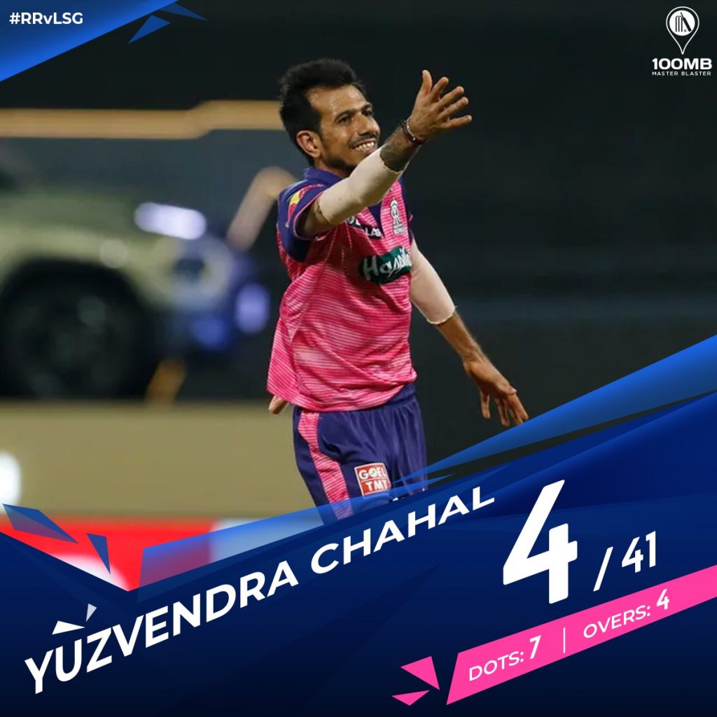 Yuzvendra Chahal continued his impressive run with the ball and bowled a game-changing spell for his side. The leg spinner picked up 4 for 41 in his four overs and found breakthroughs at crucial moments to help his side get a hold of the game. He moved to the top of the purple cap race as a result of his consistent wicket-taking abilities.