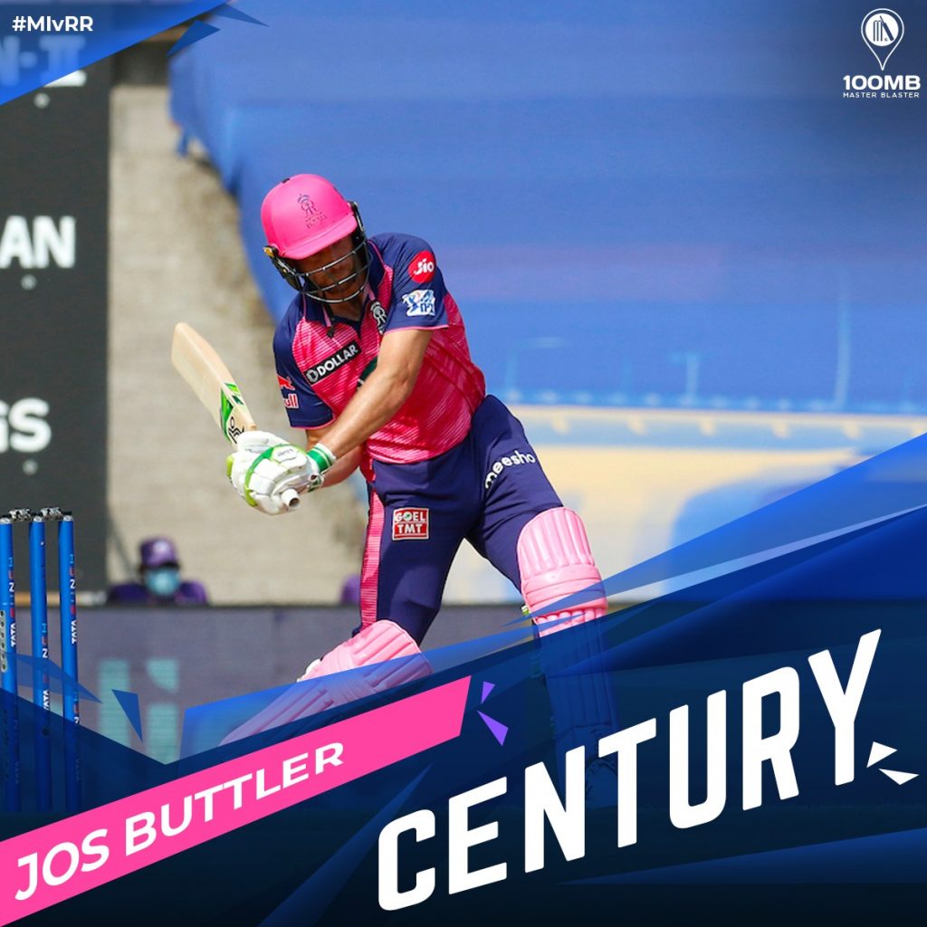 Jos Buttler brought up his second IPL century. The right-hander has been in scintillating form in the last few seasons of IPL and he took advantage of the powerplay to his liking. He finished with 100 off 68 balls, hitting 11 fours and five sixes and laid the foundation for a big score as well.